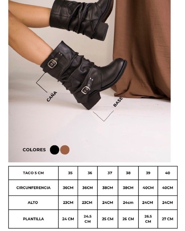 Su caña media estiliza la pierna, mientras que el taco bajo y ancho garantiza comodidad para usar todo el día. Perfecta para combinar con shorts, faldas o jeans y elevar cualquier outfit con carácter.