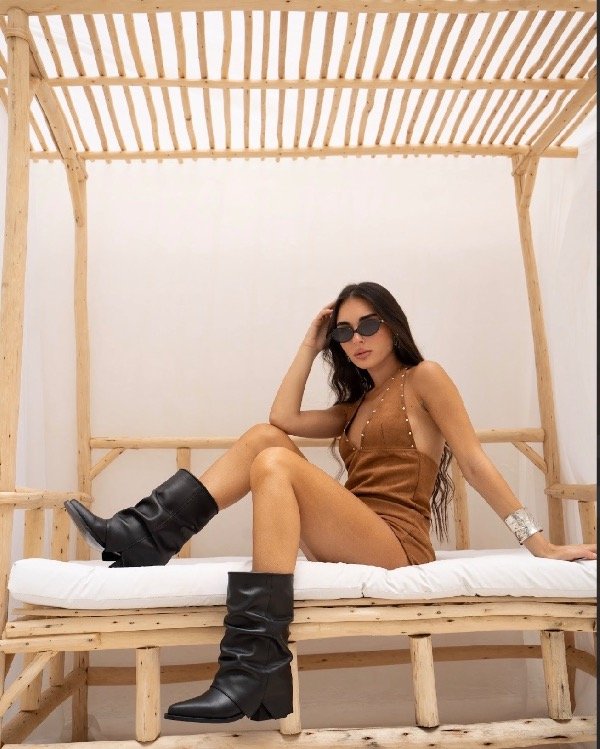 Bota caña media estilo slouchy, con caída suave que aporta un look relajado y sofisticado a la vez. Su diseño de punta fina estiliza la pierna, mientras que el taco bajo ofrece comodidad para usarla todo el día. Ideal para combinar con vestidos, jeans o faldas, tanto de día como de noche.